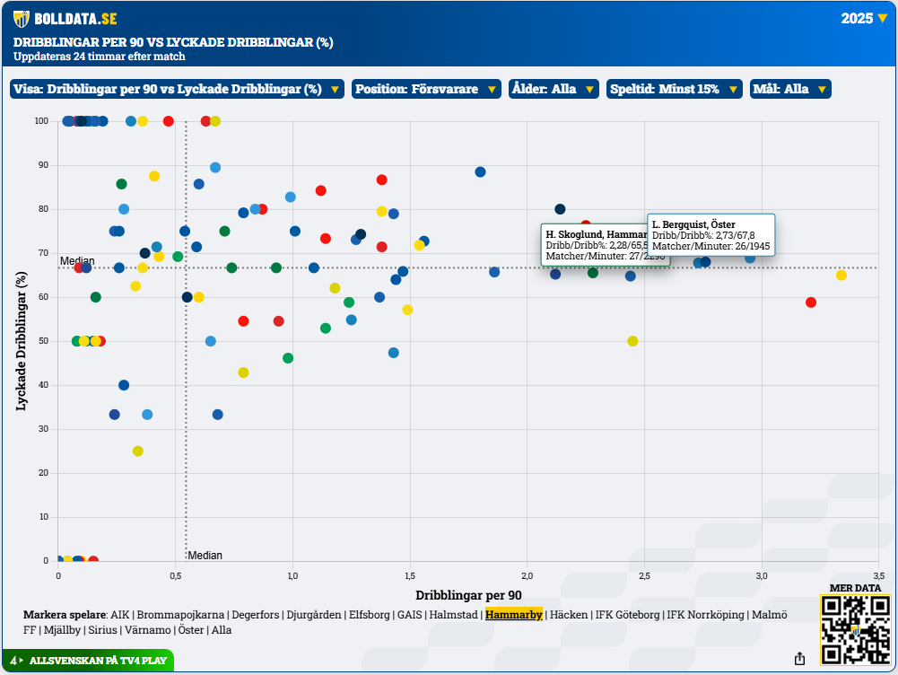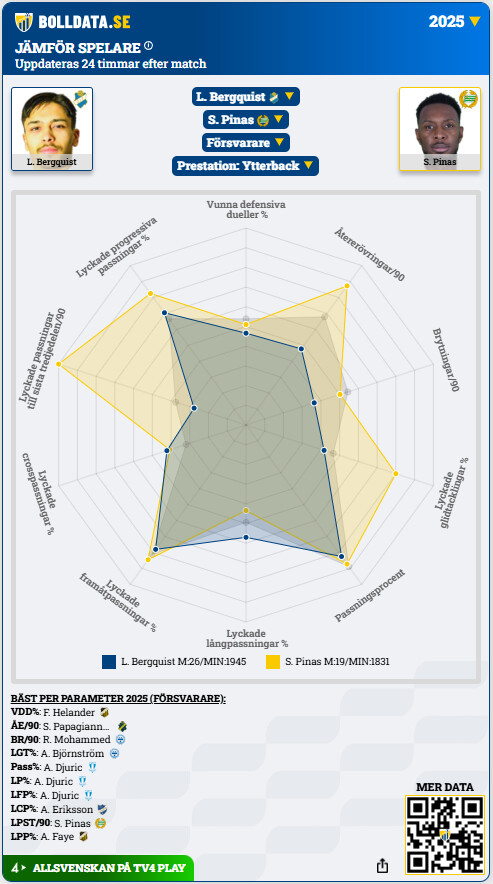 Tog även fram en jämförelse från Bolldata. Kanske lite elakt att jämföra med Pinas som spelade i ett aaaaaningen mer spelförande lag än öster, men here we go: