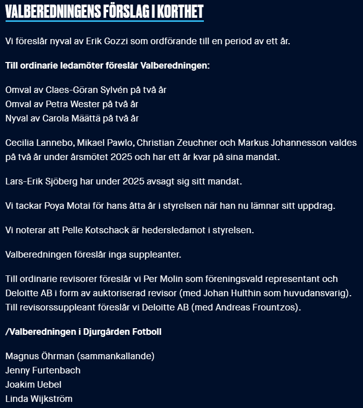- Föreningen har infört en transferkommitté, inte helt olik hur det ser ut på investeringsbolag. I denna ingår Bosse, Gozzi och Frisén. Det talas om att “förstå processen”, men handlar förmodligen mest om att minimera misstag genom ökad noggrannhet.