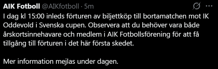Högsta förtursnivå tilldelas personer som både innehar årskort och är medlemmar i AIK Fotbollsförening. Därefter följer en nivå för samtliga som antingen är årskortsinnehavare eller medlemmar i AIK Fotbollsförening. Övriga supportrar erbjuds tillgång efter dessa två nivåer.