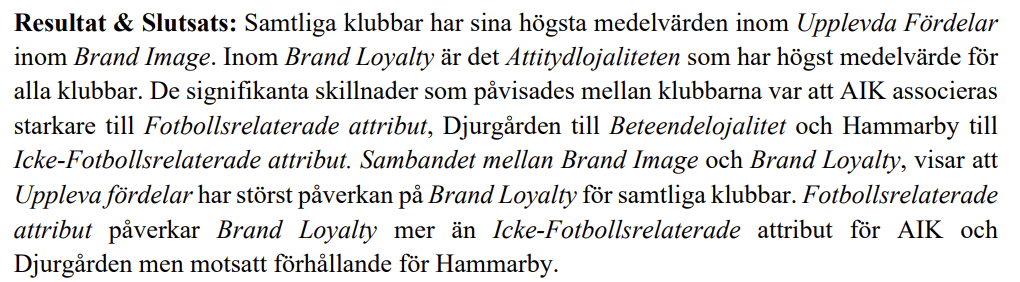 Det finns en kandidatuppsats som undersöker Brand loyalty och Brandy image för AIK, Djurgården och Hammarby, från 2019. Inte färsk, men hyfsat intressant ändå.